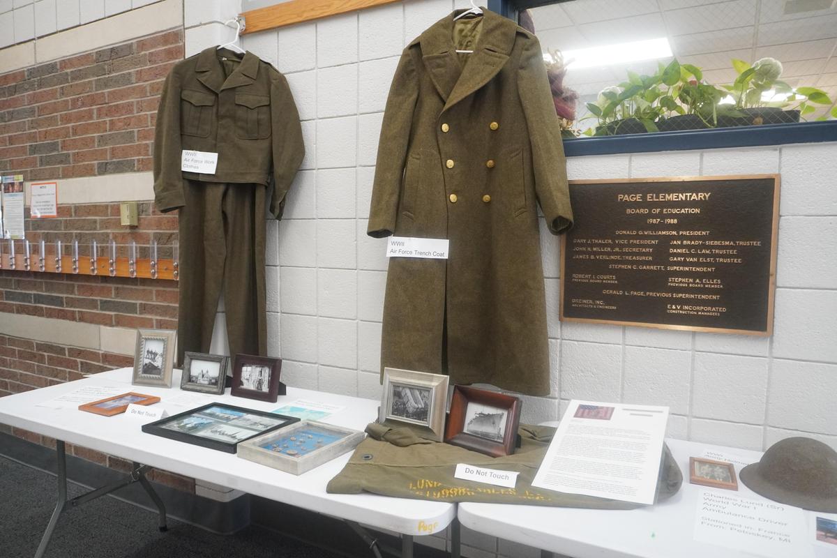 Principal Amy Forman brought in many of her own items to display of her grandfather and great-grandfather who served in World War I and World War II. Her great-grandfather, Charles Lund Sr., was an ambulance driver in World War I and her grandfather Charles Lund II, was an Air Force mechanic.
