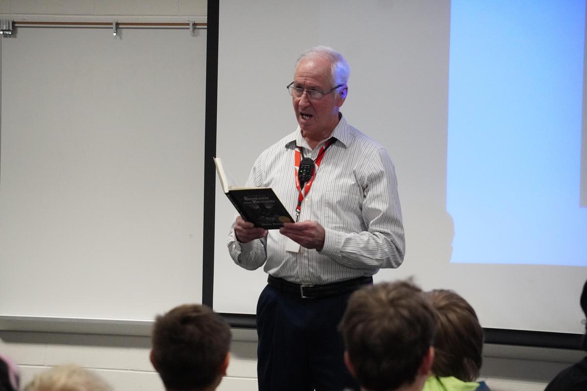 Stricklen also told students it’s important for their writing to have a hook early. “You want to keep someone reading and wondering what’s going to happen next, so you have to hook them into the story right away,” he said. He demonstrated what a hook is by sharing a few pages from his book, “Beneath and Beyond.”