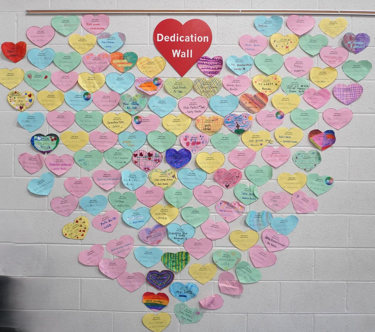 Near the entrance to the gym there is a special dedication wall prominently displayed so all can see. A giant heart is made out of smaller paper hearts. Each of those paper hearts held the names of loved ones students know who had, or continue to have, heart problems. Many students were jumping this week in honor or remembrance of those names on their hearts.
