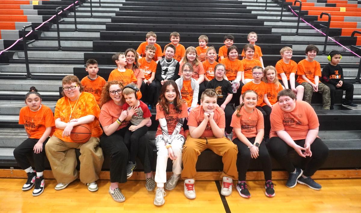 The Lee Elementary student body along with some classes from Page Elementary walked to the high school to fill the stands and support their classmates in their unified basketball game against Byron Center. Their colorful signs - supporting both TK and Byron Center - were lifted high above their heads as the cheers grew louder and louder. And every basket, no matter who made it, brought on an onslaught of even more cheers.